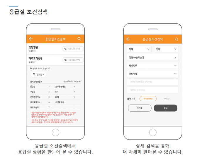 모바일앱으로 모든 응급의료정보를 검색하여 볼수 있습니다.