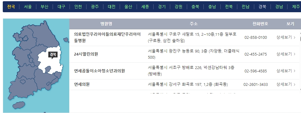 공휴일, 연휴 아플 때 이용할수 있는 병의원, 응급실, 소아과 정보를 알려드립니다.