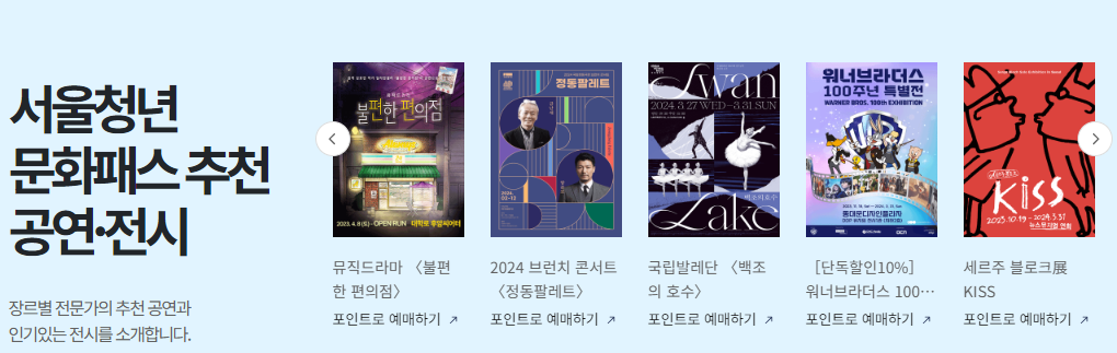※ 서울청년문화패스 콜센터 ☎ 1533-3427 월~금 09:00~18:00(토, 일요일 및 공휴일 제외, 점심시간 12:00~13:00)
