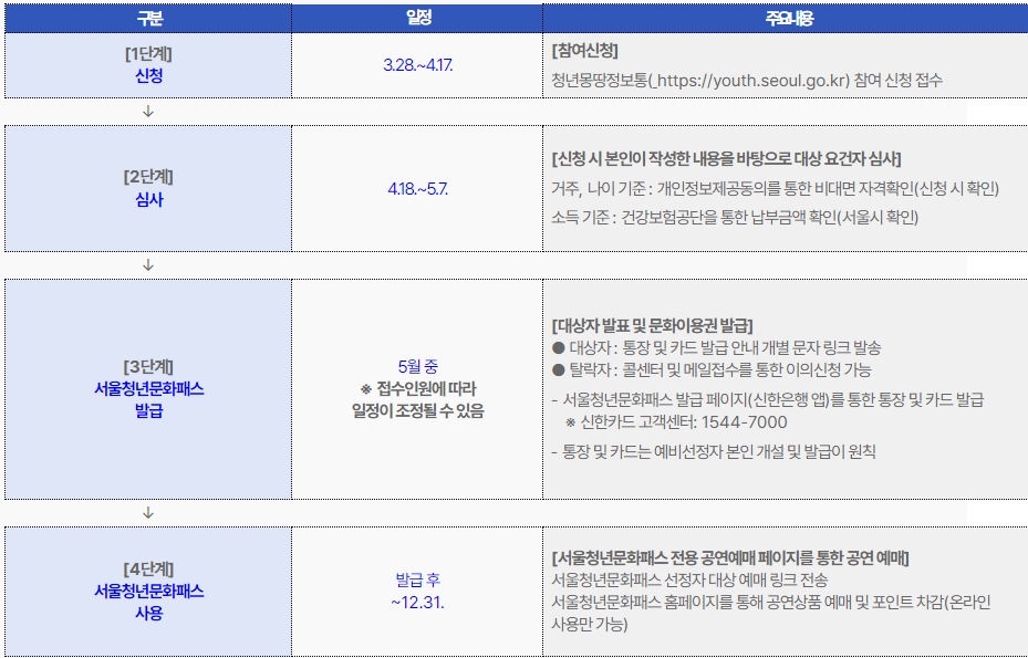 ※ 문화누리카드 발급자도 서울청년문화패스 신청 가능 (각 사업별 자격요건 충족 시, 동시 발급 가능)