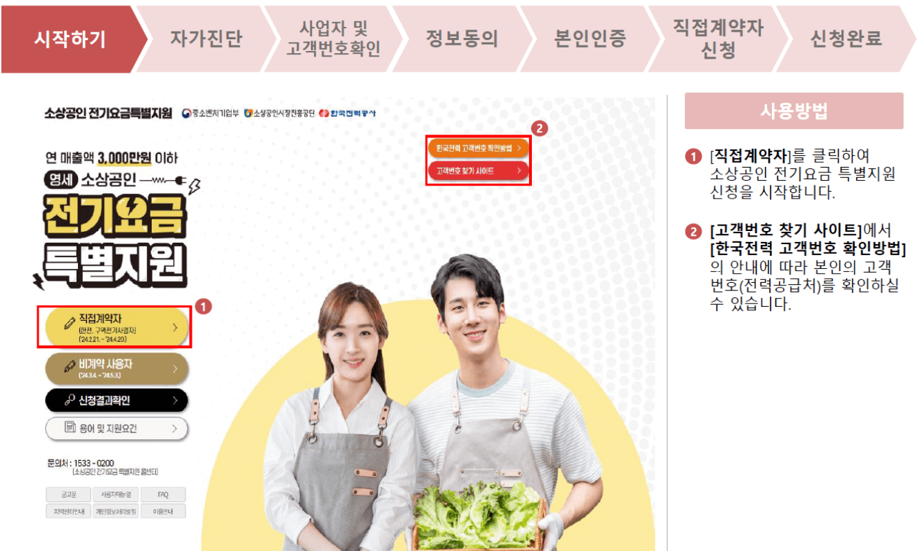 전기요금 감면대상자 중 비계약자의 계약상태에 따른 제출서류와 직접계약자 온라인 신청방법,