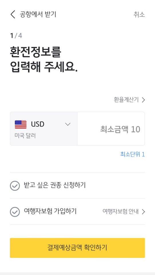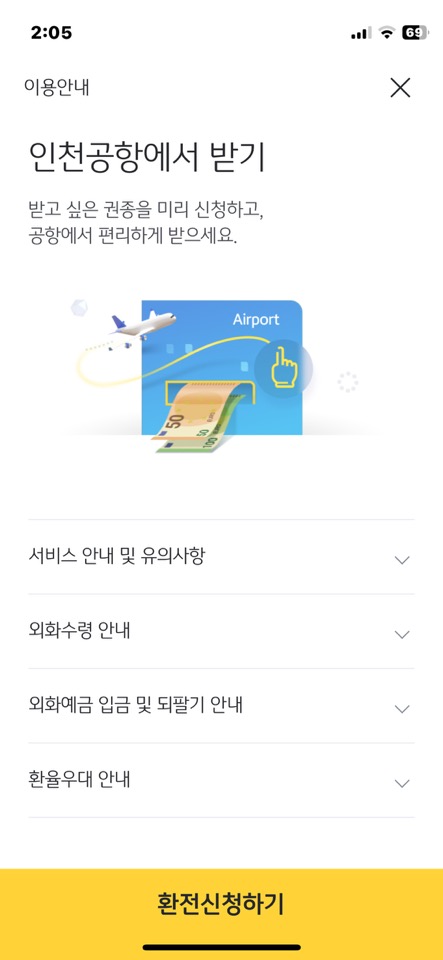 ① 환전 신청 시 ‘인천공항에서 받기’ 전용 서비스 선택