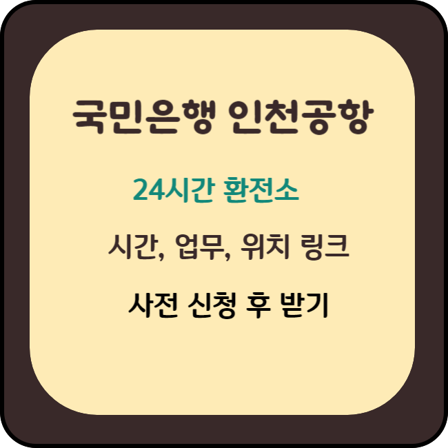 해외출국 예정이라면 환전을 준비해야지요. 트래블카드가 있어도 약간의 현금 준비는 필요합니다. 수수료 없이 인천공항에서 간편하게 픽업할수 있도록 국민은행 환전소(24시간 운영 포함),
